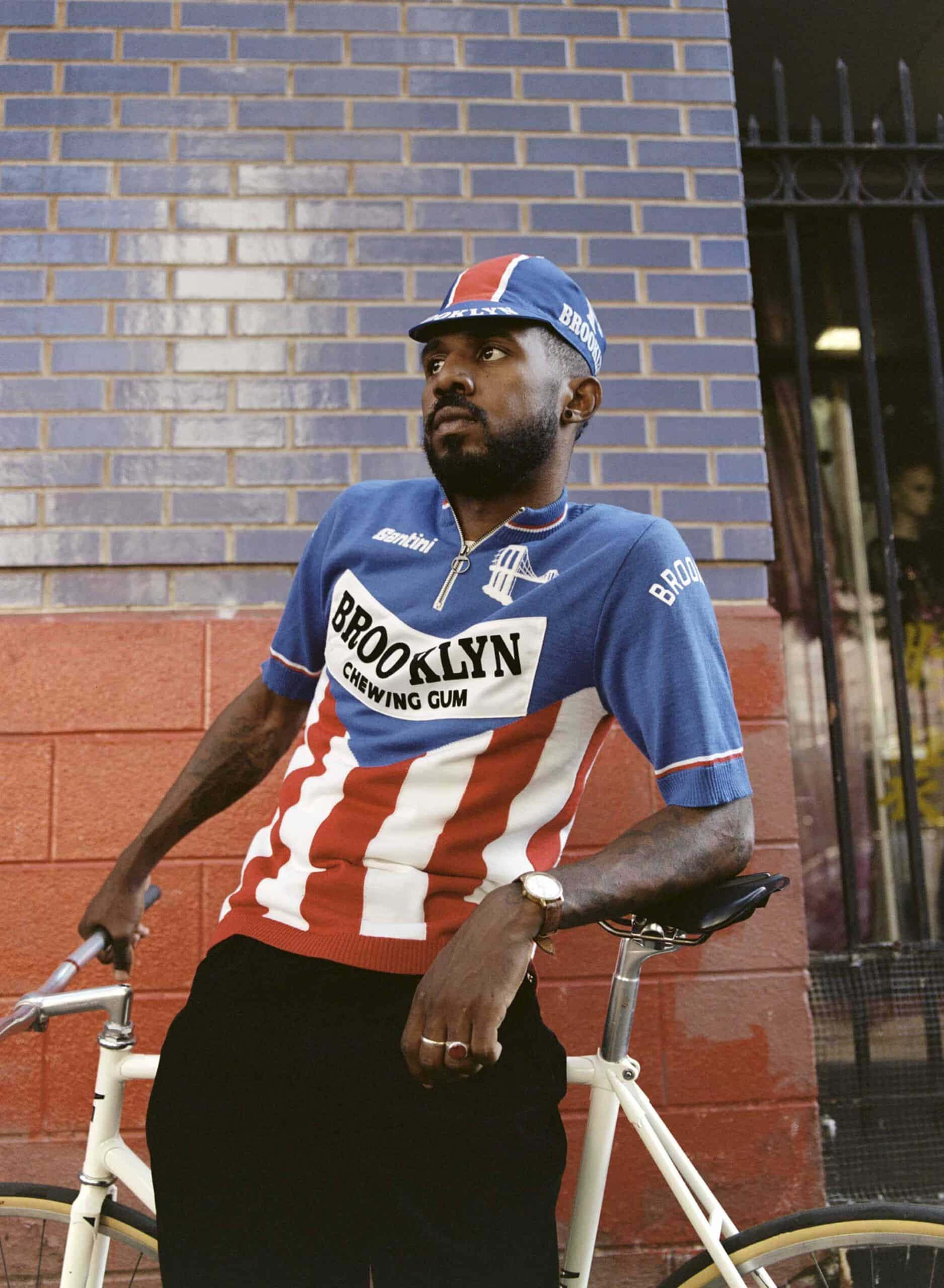 En complément, Santini propose une ligne lifestyle avec t-shirts, sweats et casquettes, toujours aux couleurs du drapeau américain et marqués du logo Brooklyn Chewing Gum.