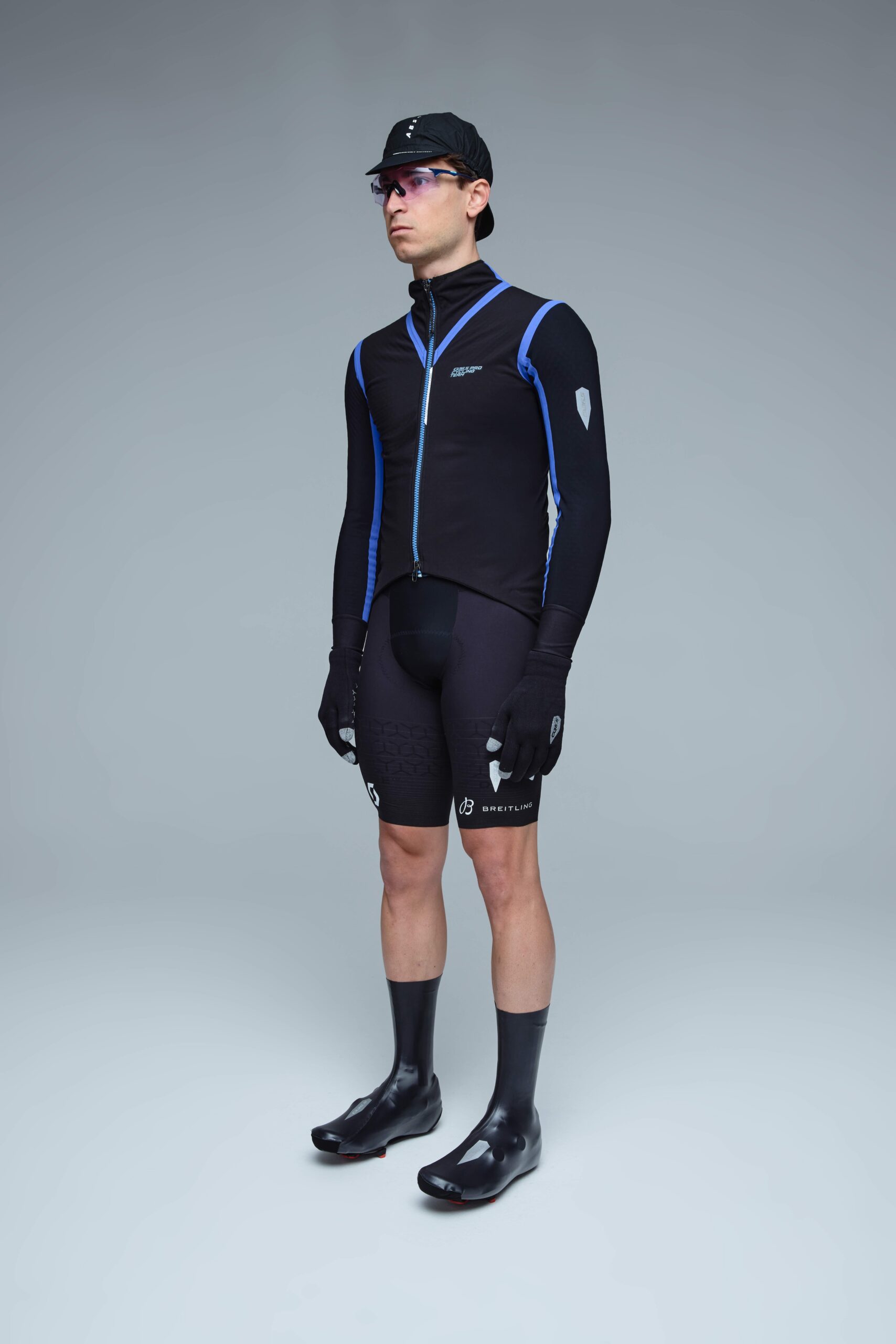 Autour de ces trois pièces principales, Q36.5 complète son dispositif hivernal avec d’autres éléments : veste légère, maillot manches courtes, gilet coupe-vent, couvre-chaussures et gants néoprène, tous proposés dans un noir sobre.