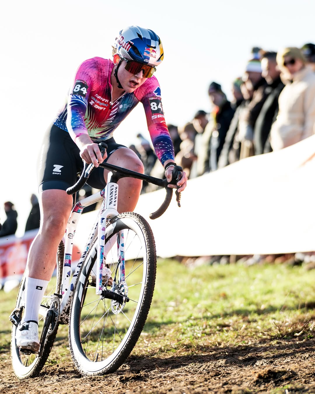 Quand Zoe Backstedt s’aligne sur un circuit de cyclo-cross, impossible de ne pas remarquer sa machine. Cette saison, la coureuse britannique roule sur un Canyon Inflite CFR au design entièrement customisé.