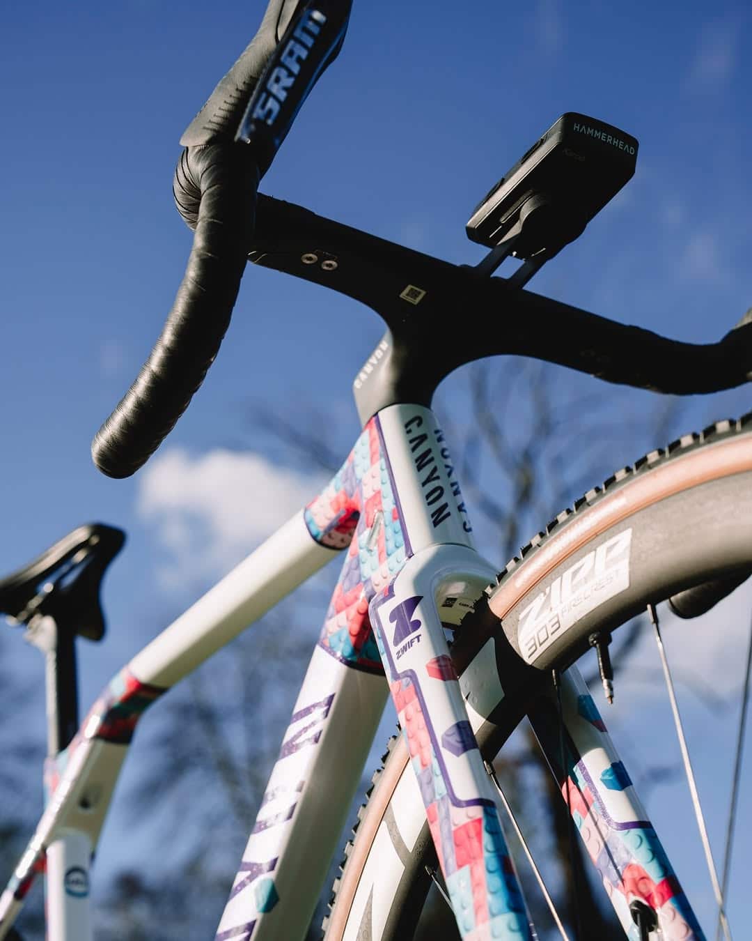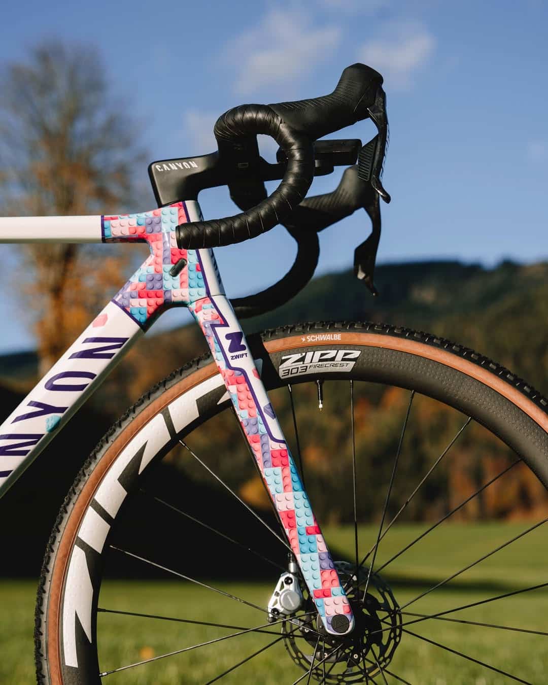 Derrière l’esthétique atypique du vélo de Backstedt, on retrouve la patte de Tiffany Cromwell. Coéquipière de Zoe au sein de l’équipe Canyon//SRAM zondacrypto, la coureuse australienne s’est chargée du design en s’inspirant de l’univers des briques LEGO.