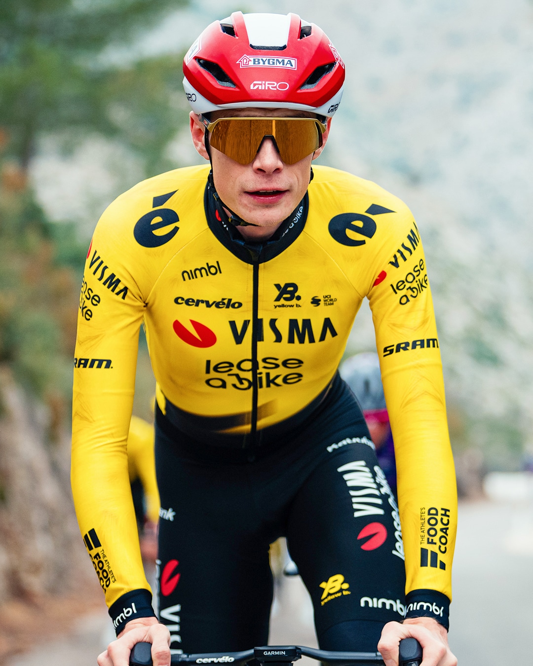 Pour concevoir ce kit, Team Visma | Lease a Bike a collaboré avec Nimbl. Déjà responsable des chaussures utilisées par l’équipe, la marque italienne prend désormais en charge l’équipement textile. Ce partenariat permet de développer une tenue qui combine technicité, ergonomie et exigence.