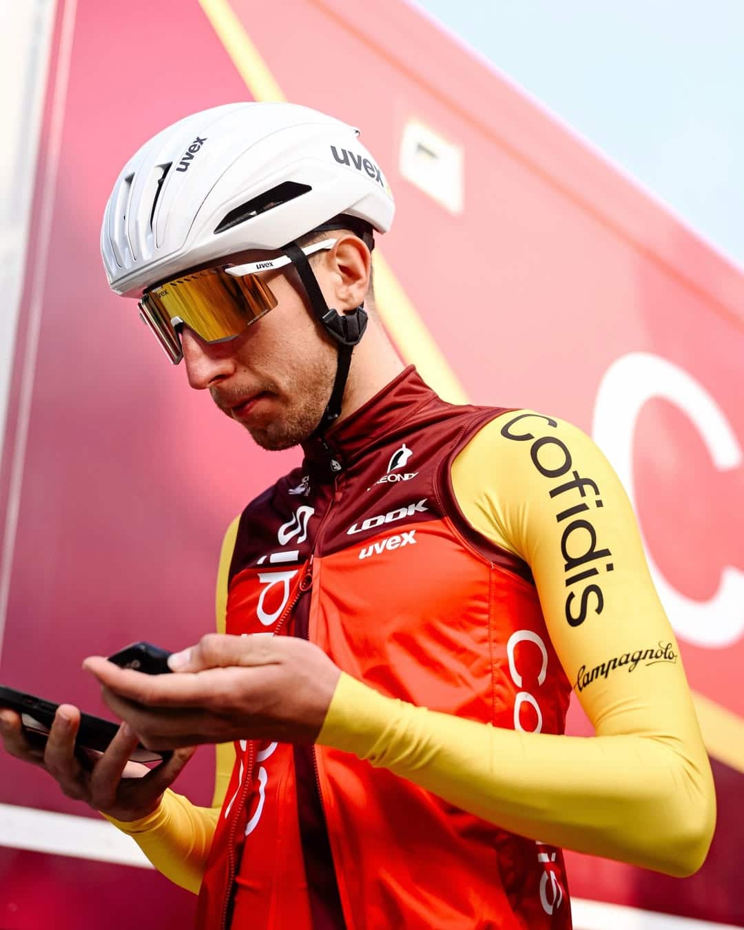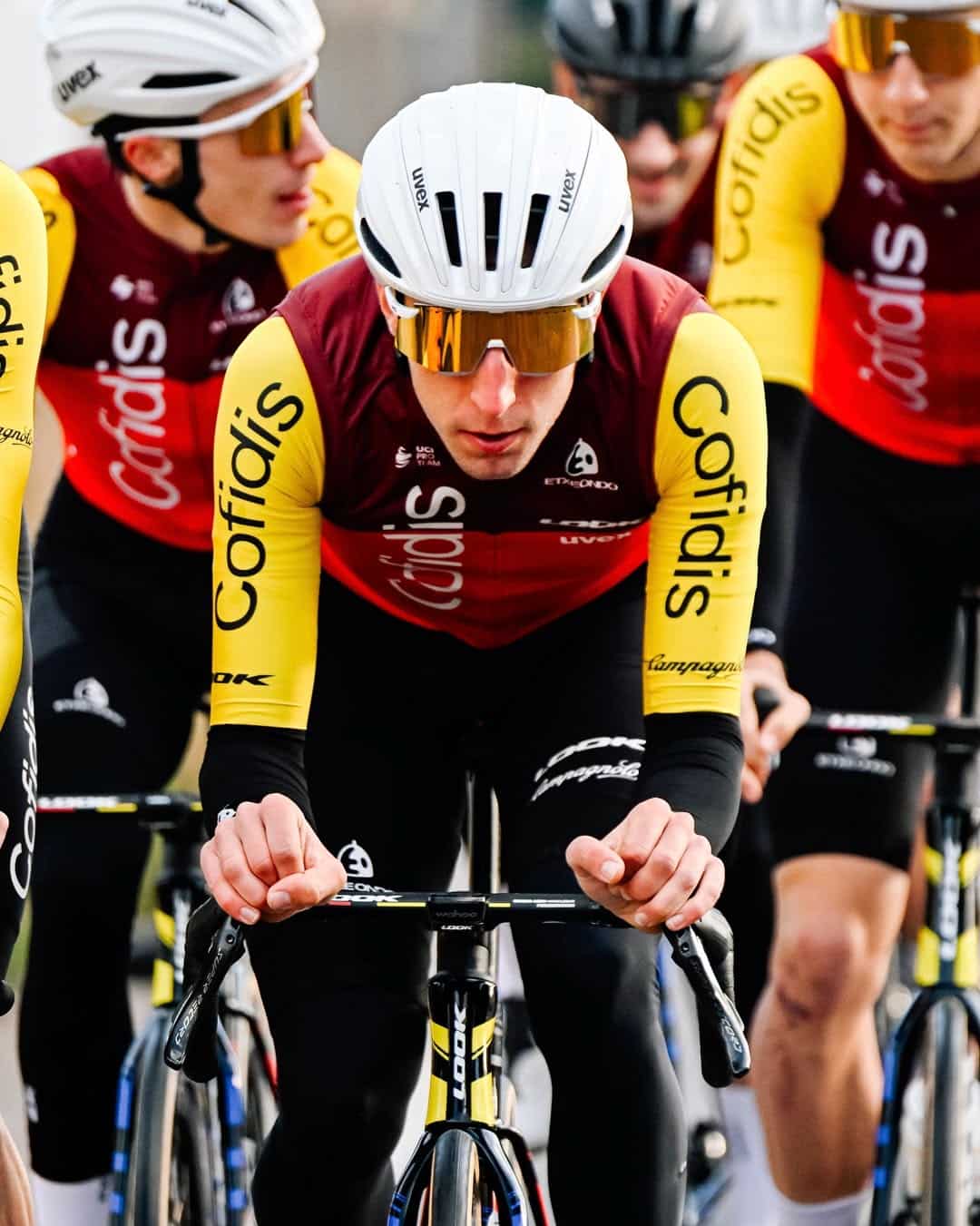 L’équipe Cofidis amorce un virage progressif en ce début d’année 2026. Si le maillot conserve son design, le logo UVEX remplace celui d’Ekoï côté cœur, marquant un changement de partenaire technique pour les casques et les lunettes.