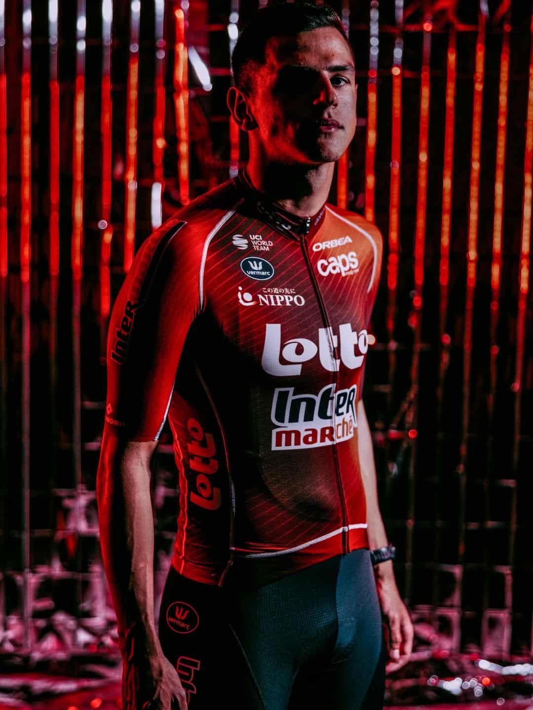 Un maillot à dominante rouge, entre héritage Lotto et message de fusion