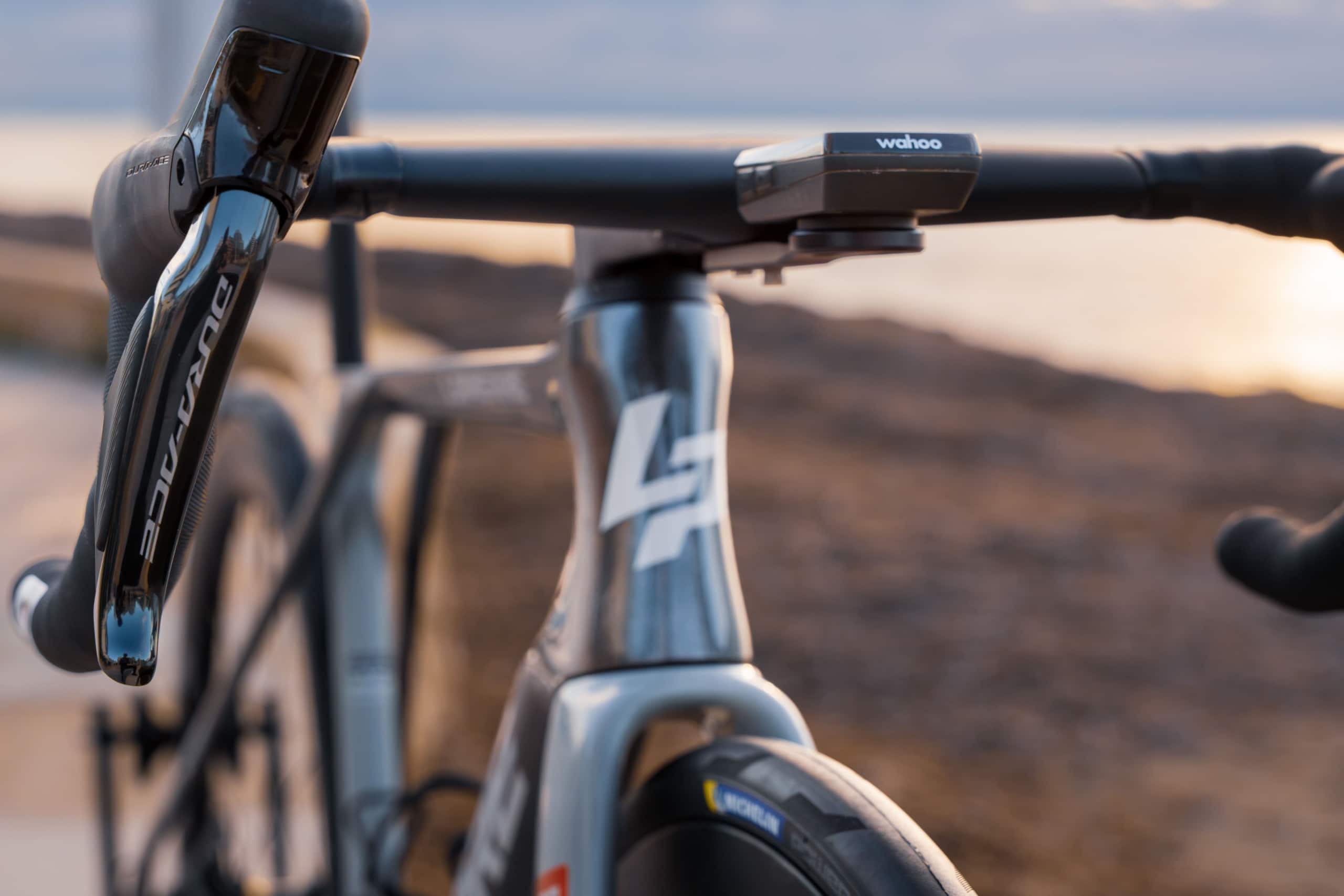 Le vélo conserve le même châssis que les saisons précédentes, mais s’habille cette fois d’une livrée gris et blanc inédite. Une esthétique plus sobre, plus discrète, qui contraste fortement avec les versions plus expressives vues jusqu’ici. Ce traitement visuel minimaliste souligne les lignes du cadre tout en conférant au vélo une allure plus statutaire.