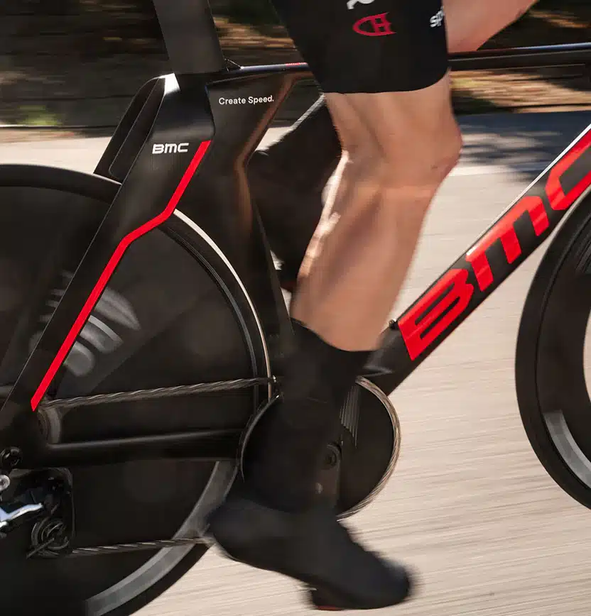 BMC annonce un gain de 3,7 % d’efficacité aérodynamique en configuration complète. Concrètement, à 450 watts, une vitesse de 55 km/h deviendrait 55,7 km/h.