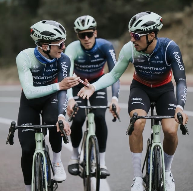 Les coureurs de Decathlon CMA CGM avec de la nutrition Decathlon