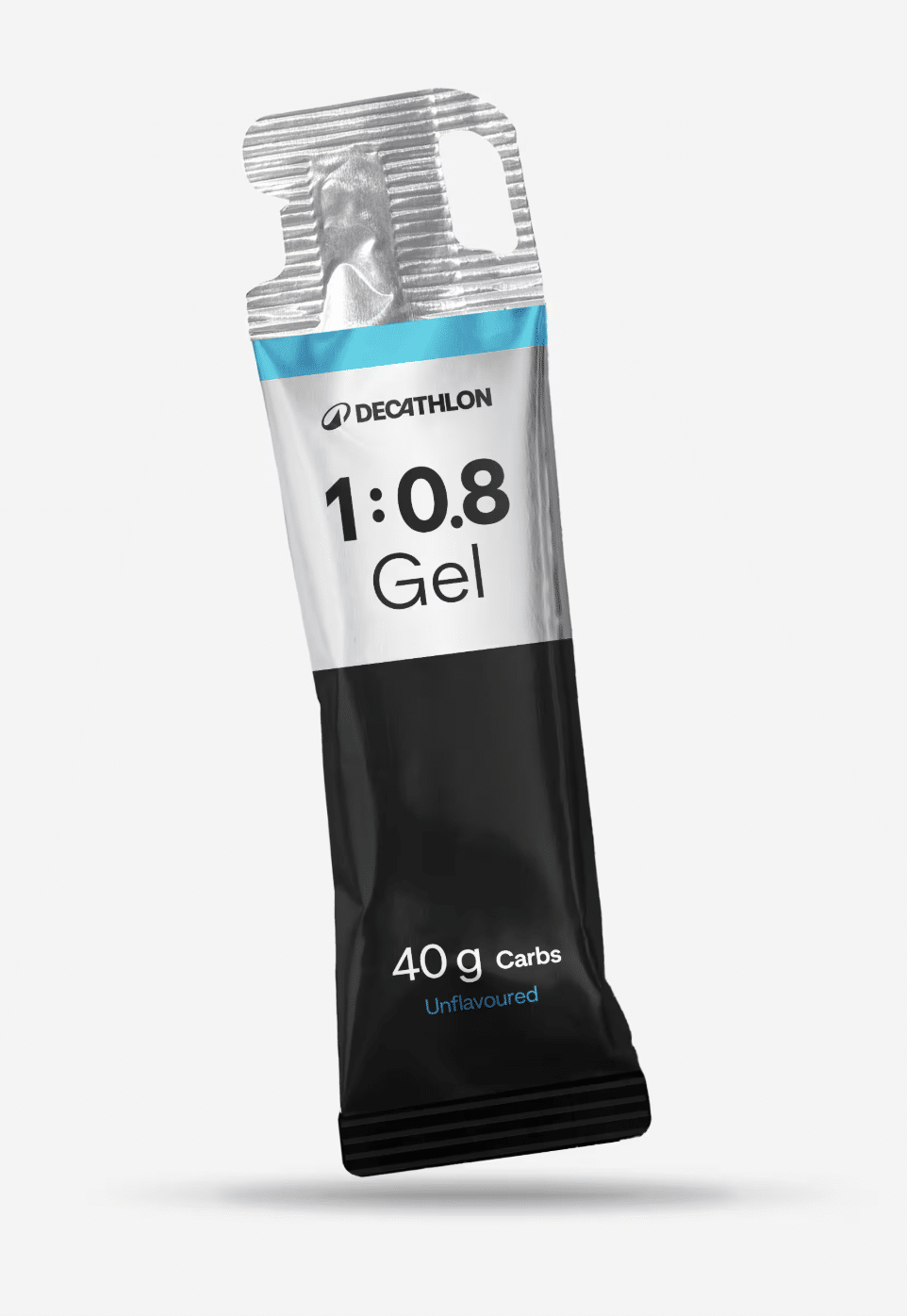 Lancée en février 2026, la gamme 1:0.8 regroupe dix références dédiées aux efforts d’endurance et aux intensités élevées. On y retrouve des gels énergétiques Decathlon, des barres à base de dattes, des boissons d’effort ainsi que des pâtes de fruits. L’ensemble repose sur un principe précis : un ratio glucose/fructose 1:0.8.