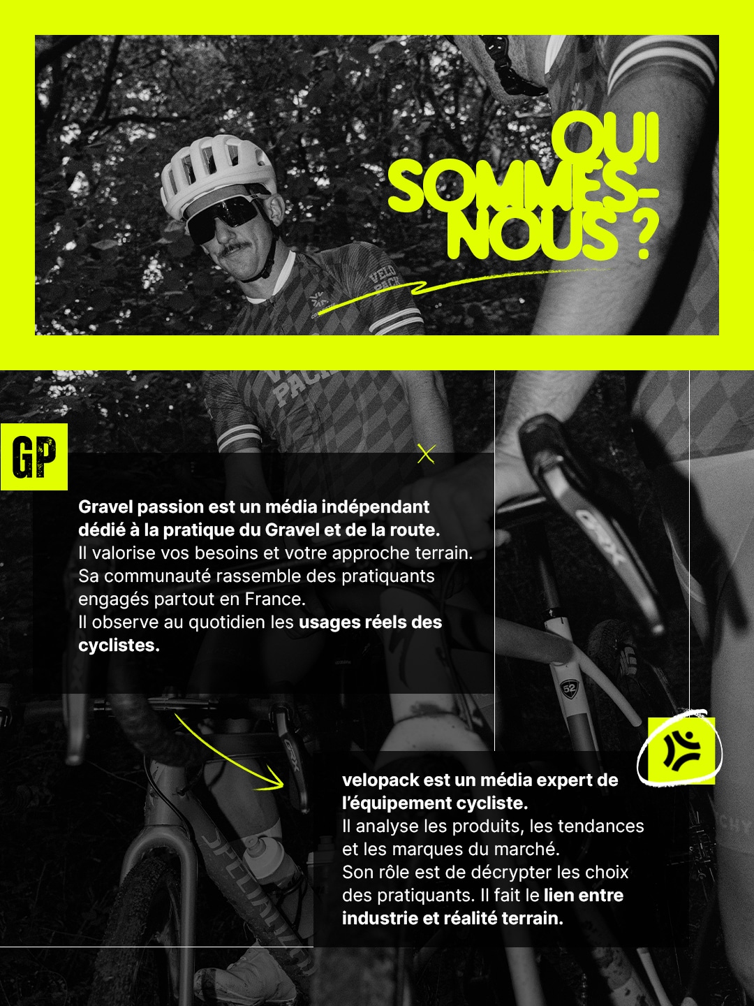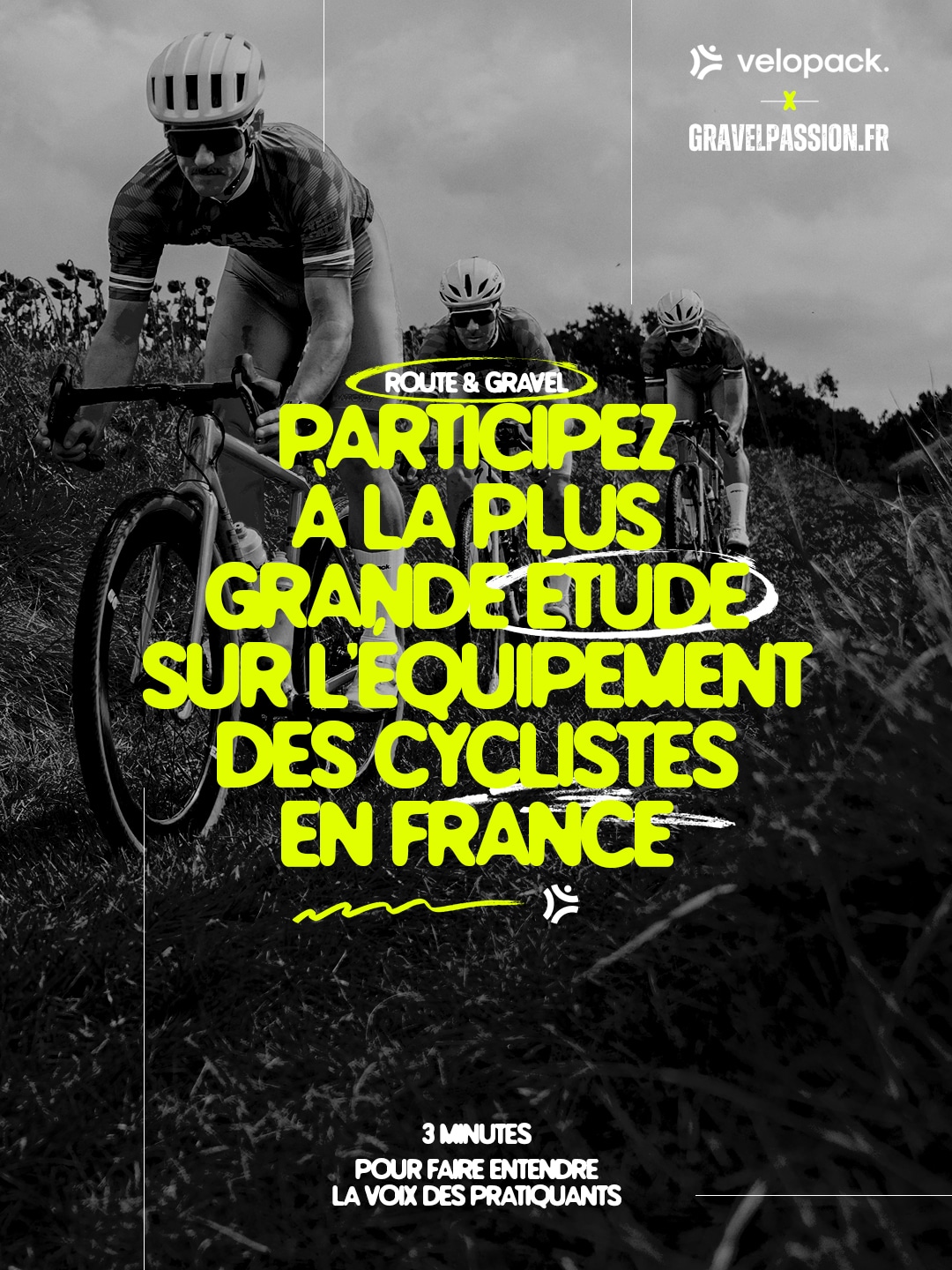 Pour mener cette étude, velopack s’associe à Gravel Passion, deux médias spécialisés qui partagent une même volonté : mieux comprendre la pratique cycliste.