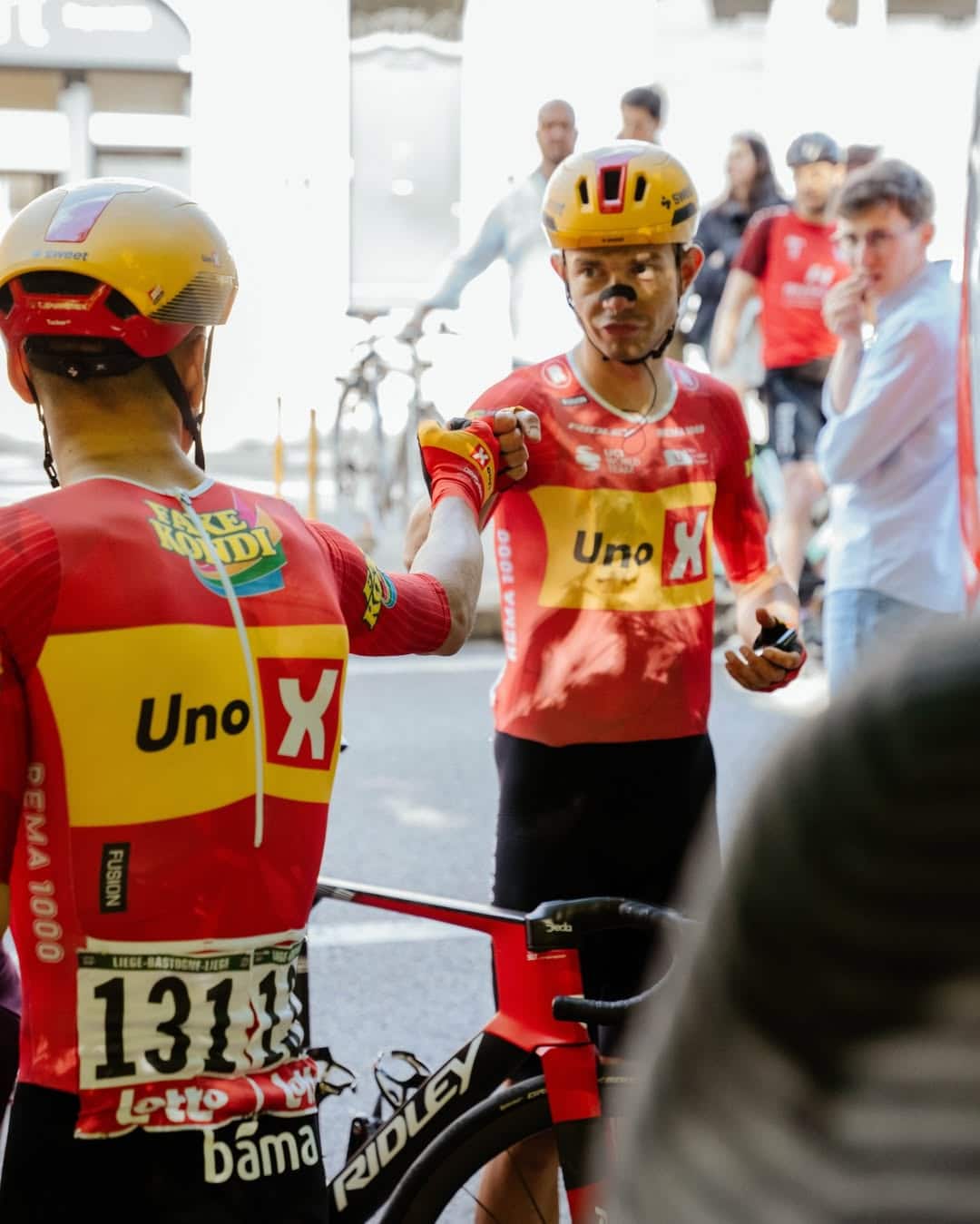 Ce positionnement tranche avec l’identité visuelle habituelle de l’équipe. Uno-X est l’une des formations les plus reconnaissables du peloton, avec un maillot orange et rouge conçu pour être vu immédiatement. Le passage au noir venait rompre cet équilibre.