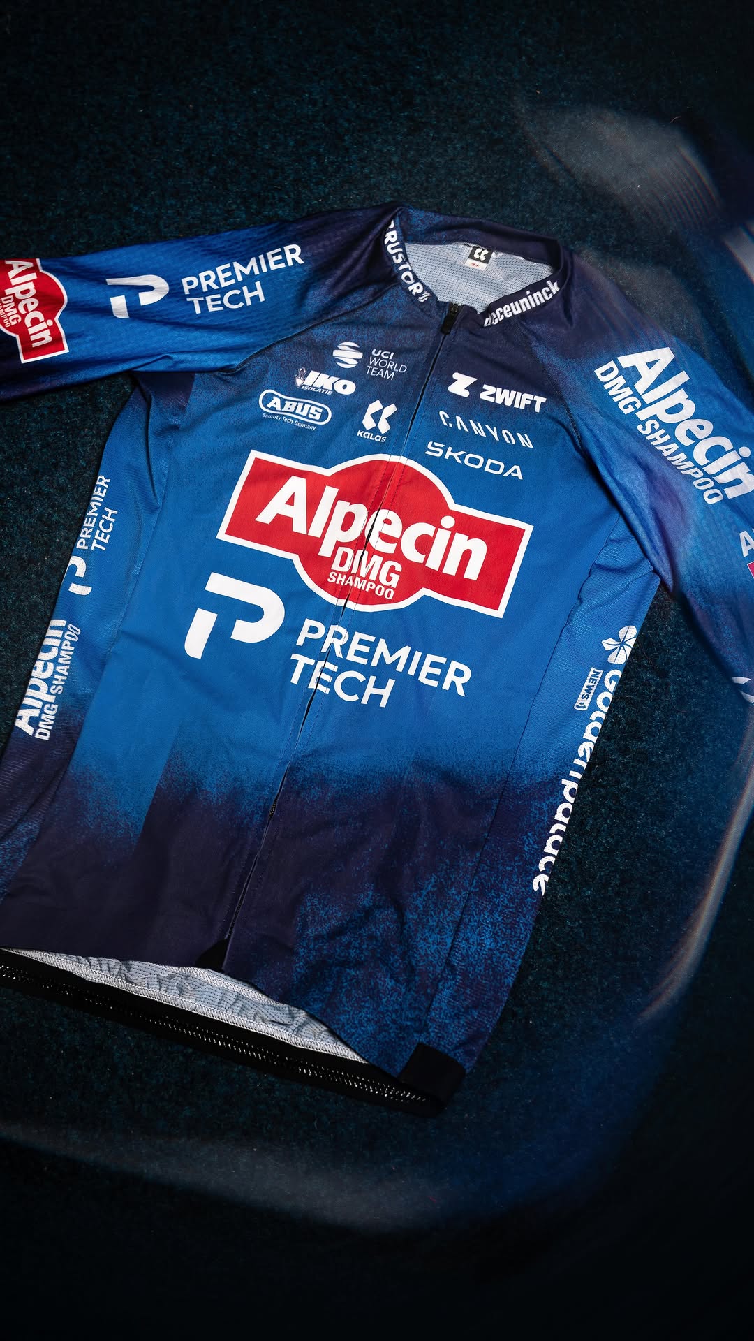 Alpecin – Premier Tech dévoile un maillot 2026 marqué par le grand retour d’un bleu profond, renforcé par un contraste fort avec le logo rouge Alpecin au centre et un rappel de rouge sur les manches. Une identité visuelle plus lisible, cohérente et immédiatement reconnaissable, pensée pour accompagner les ambitions sportives de l’équipe autour de ses leaders.
